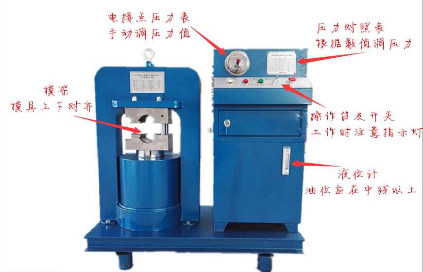 ③參照鋼絲繩壓力設(shè)定換算表(控制柜前面)轉(zhuǎn)動電接點壓力表調(diào)節(jié)旋鈕,設(shè)定鋼絲繩所需壓力值。操縱腳踏開關(guān)(左側(cè))—活塞上升,上升指示燈亮;達到設(shè)定壓力時上升自動停止,壓制結(jié)束;