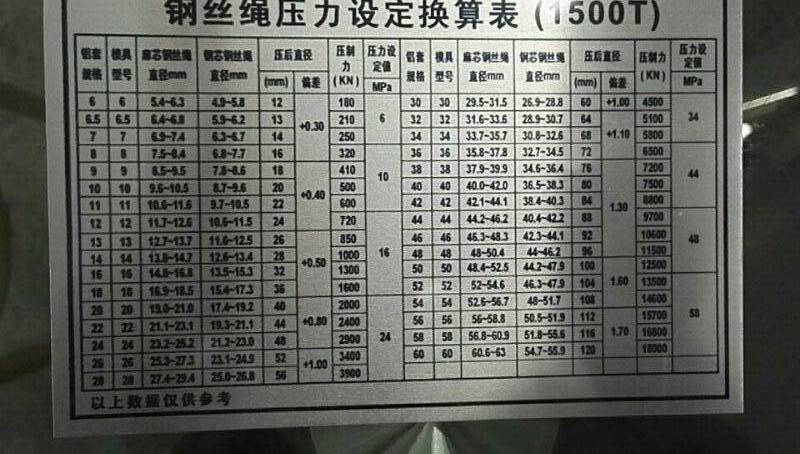 首先模具和鋁套型號(hào)是必須對(duì)應(yīng)的,比如6mm鋁套就用6#壓套機(jī)模具,8mm鋁套就用8#模具,而鋼絲繩的尺寸不一定是整數(shù),廠家配的模具正常都是偶數(shù)配,壓到?jīng)]對(duì)應(yīng)尺寸的鋼絲繩,這點(diǎn)不用擔(dān)心,模具都是有壓制范圍的,正常用1mm的上下范圍,比如15mm的鋼絲繩,可以用14mm或16mm的模具,總之最好的分別方法就是,不管鋼絲繩的尺寸是多少,找數(shù)值離得最近的模具就壓就可以了。還有一個(gè)重點(diǎn),剛剛說的情況都是麻芯的鋼絲繩,而鋼芯的鋼絲繩正常都是比麻芯的鋼絲繩所用模具大一個(gè)型號(hào)。參數(shù)這樣的方法,客戶在使用鋼絲繩壓套機(jī)模具時(shí)就不會(huì)不知道如果選擇了。
